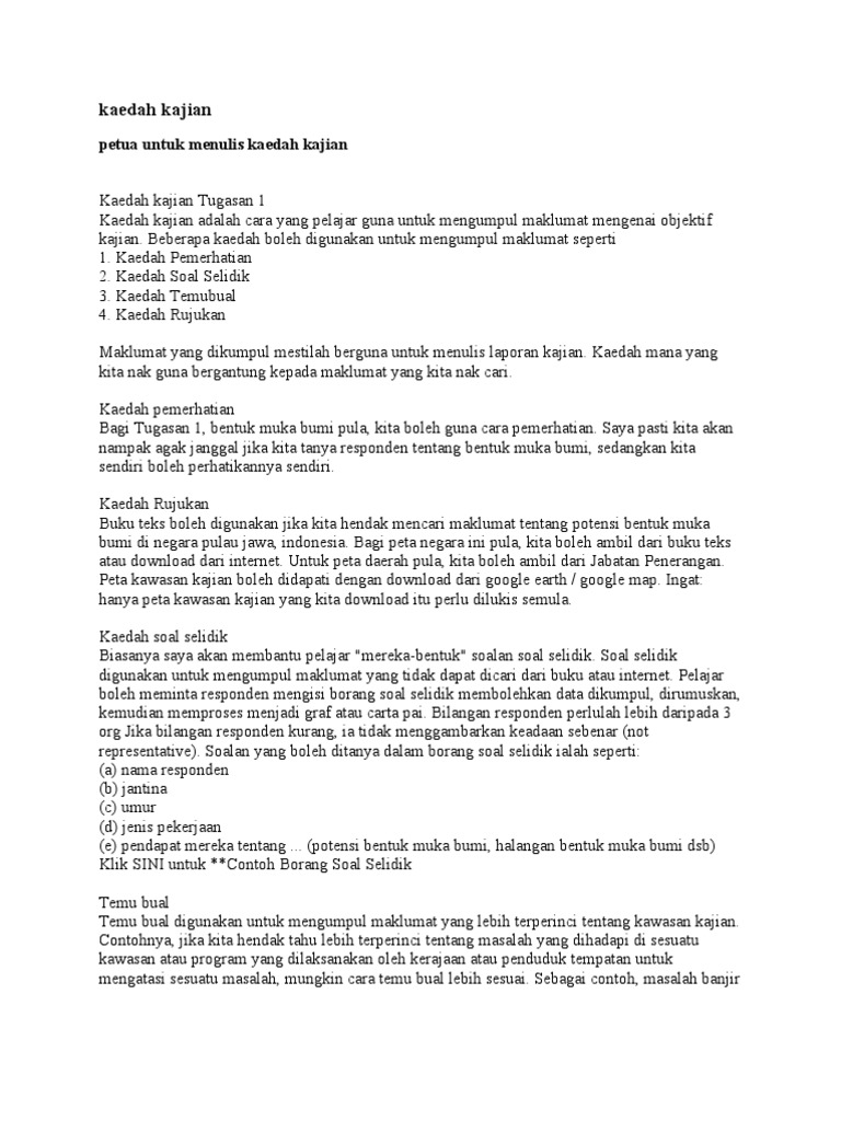 . Kaedah ini disertai beberapa foto yang diambil semasa kajian dilakukan. Menentukan saiz sampel 4. Menyediakan borang soal selidik geografi pt3 kepada responden anda masing-masing sebagai sebahagian daripada rujukan pada ketika nada sedang menjadi kajian.